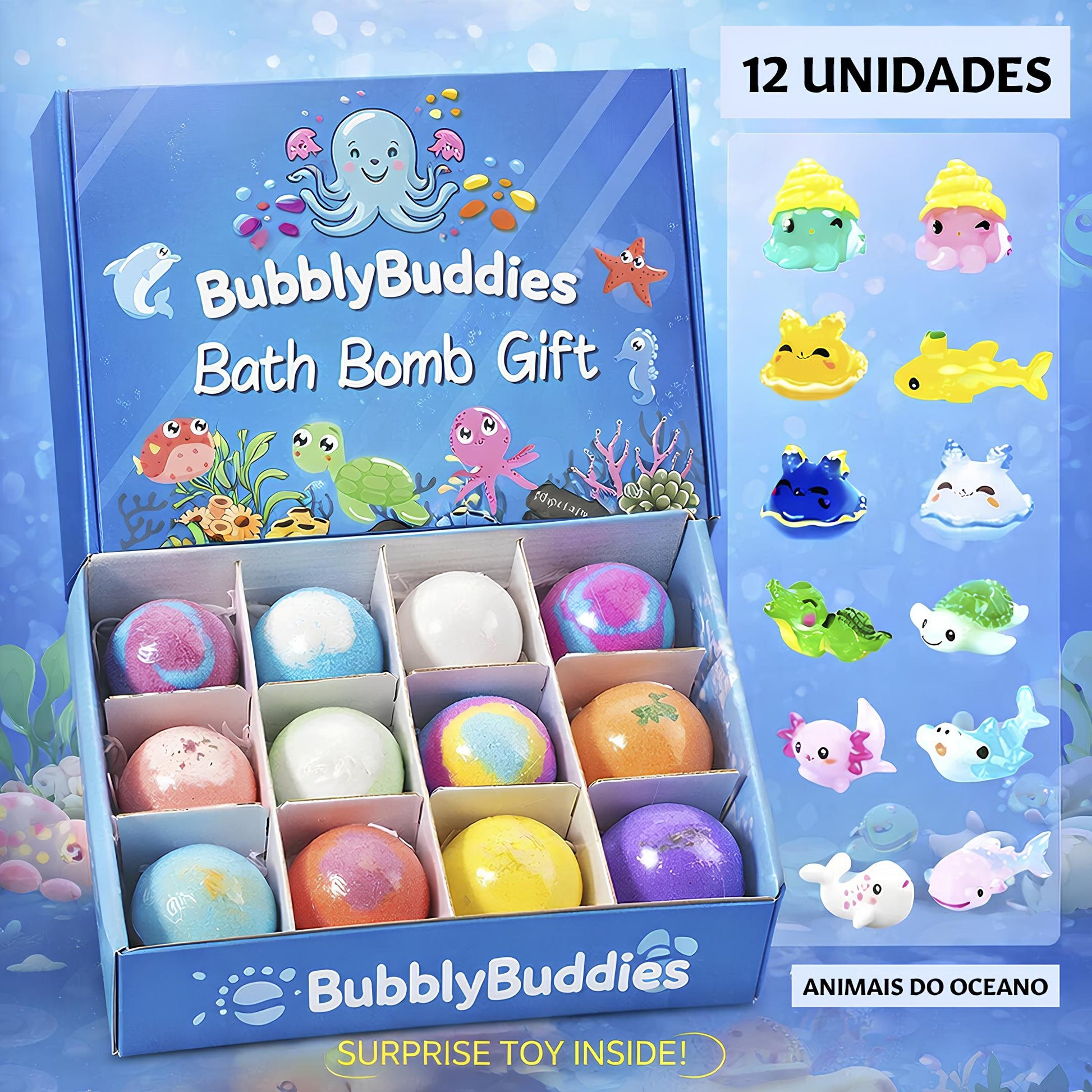 caixa com 12 bombas de banho surpresa oceânicas